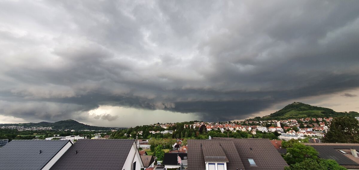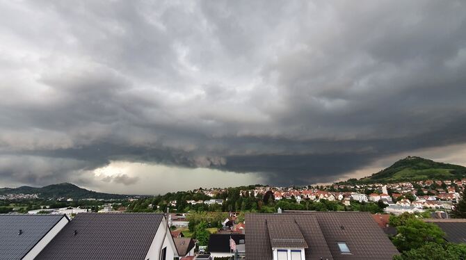 Da braut sich etwas zusammen: aufziehendes Unwetter über Eningen, festgehalten von einer GEA-Leserin.