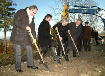 Spatenstich fürs neue Waldcafé (von links): Architekt Wolfgang Riehle, Bauherr Thomas Schmälzle, Bauherrin Ilona Schmälzle, Bürgermeister Rudolf Heß.