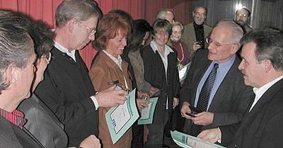 Gedrängel bei der Ehrung langjähriger Mitglieder: Vorsitzender Prof. Hans Krause (rechts), neben ihm Werner Wohnus.