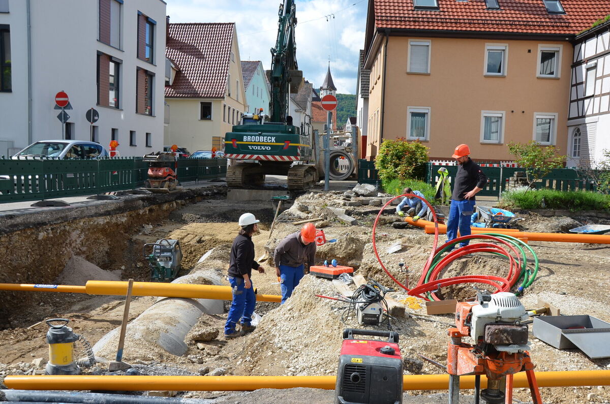 Ein Blick auf die Infrastruktur unter der Fahrbahndecke: Über die neue Dole des Steingebachs laufen Gasleitungen und Wasserrohre.