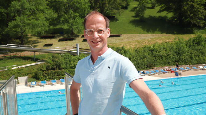 Lieblingsplatz Eninger Waldfreibad: Nicht nur im Wasser, auch auf dem Drei-Meter-Turm fühlt Marcel Modschiedler sich wohl. FOTO: REISNER