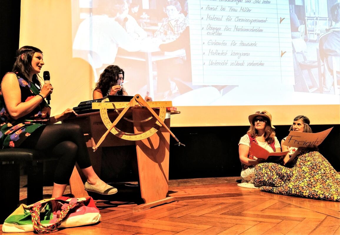 In einer Spielszene griffen Lehrerinnen die »rebellische« Seite der Schule auf. So gab es 1971 den Protest »Gläserne Schule« der Lehrer gegen die Verleumdung, »faul« zu sein. Im selben Jahr streikte die SMV gegen die Preiserhöhung bei Brezeln auf 20 Pfennig. 2003 gab es eine Demo gegen den Sudankrieg, am 9. November 2018 gegen Hass, Hetze und Rassismus.