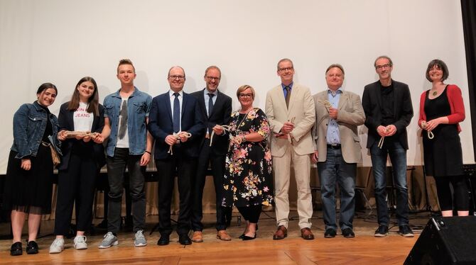 Bürgermeister Michael Schrenk überbrachte die Glückwünsche der Stadt und erinnerte in seinem Rückblick an das Jahr 1977, als die Schule ihren heutigen Namen erhielt. Zuvor sei »Echazschule« im Gespräch gewesen, wobei die Schule selbst am liebsten die schlichte Bezeichnung »Realschule« beibehalten hätte. Schrenk regte an, ein Bildnis von Wilhelm Hauff in der Schule aufzuhängen.