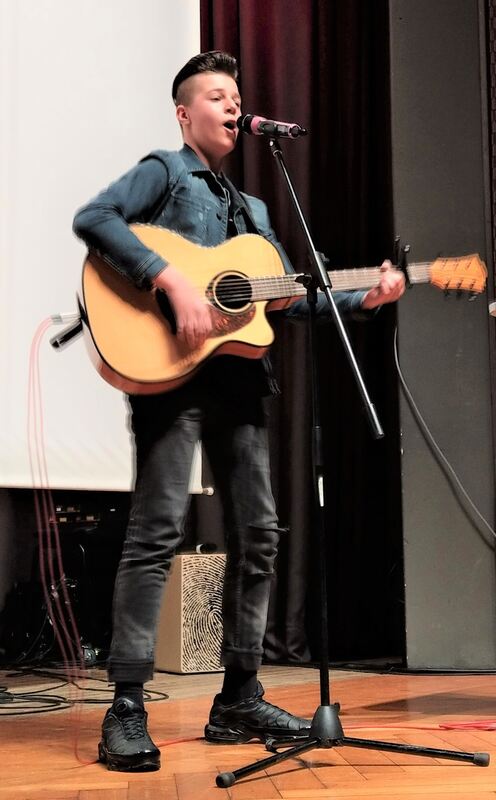 Dies nahm auch der WHR-Song auf, den der Schüler- und Lehrerchor zusammen sangen. Musikalisch wurde das Publikum sehr verwöhnt. So begeisterte das virtuose Spiel von Hannah Blind auf ihrer Blockflöte und der wunderschöne Beitrag der Schwestern Galina und Zina Dabidova an Violine und Klavier. Satten Rock 'n' Roll gab es von Marko Budja. (GEA)