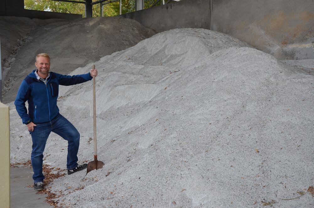 Stolzer Herr über 140 Tonnen Streusalz: Jens Herold hat für den Winter vorgesorgt.
