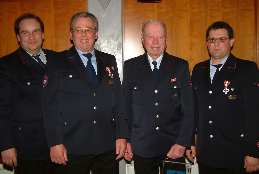 Geehrte bei der Eninger Feuerwehr (von links): Steffen Mohl, Heinz Mader, Rudolf Reinhardt und Martin Barthold.