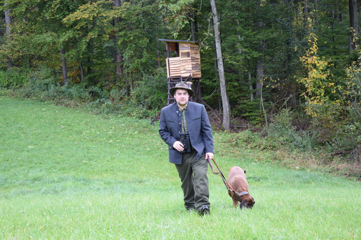 Jäger Michael Spaeth mit seinem Bayrischen Gebirgsschweißhund Adi.