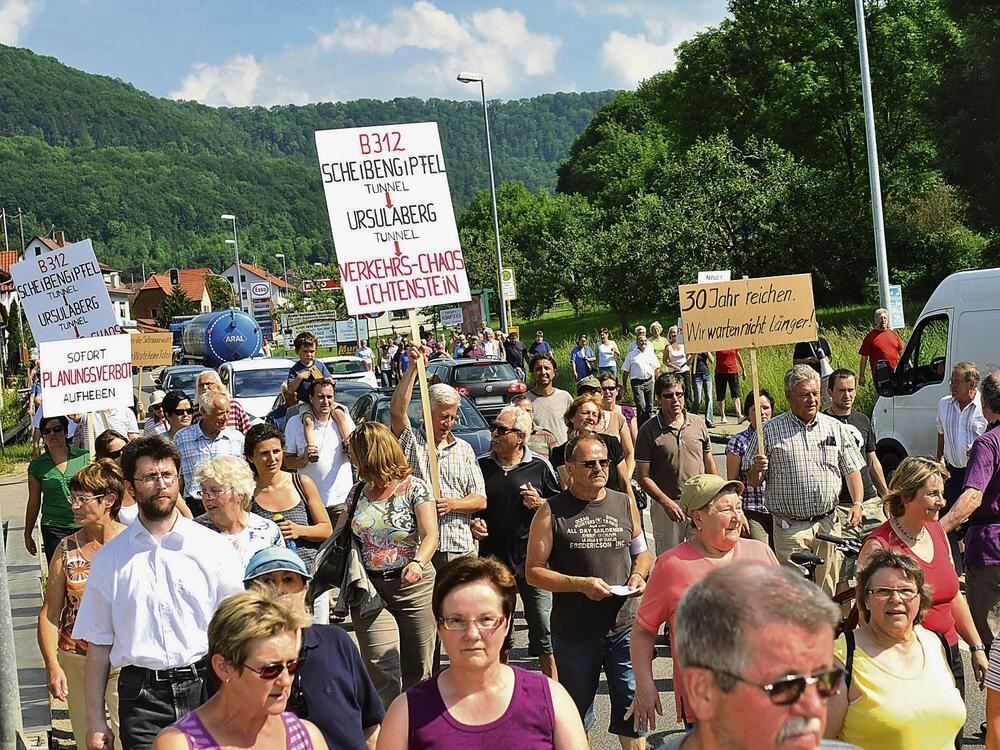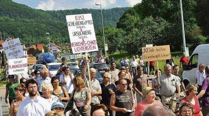 Lichtenstein vor einem Jahr: Rund 350 Bürger wollen, dass sich endlich was tut in Sachen Albaufstieg. ARCHIVFOTO: TRINKHAUS