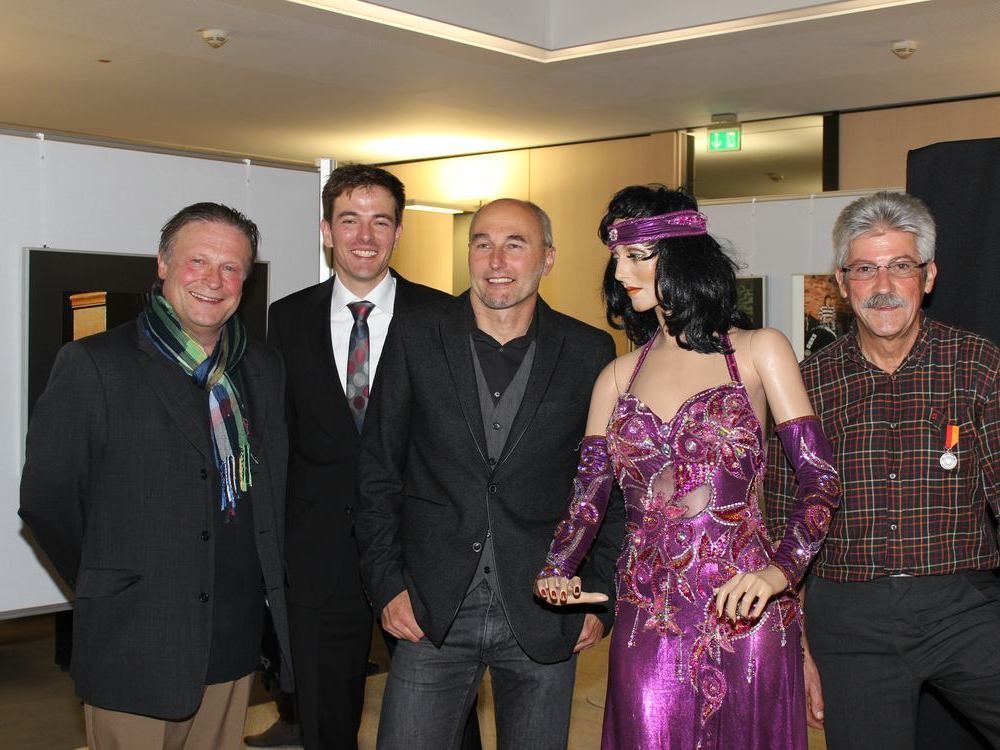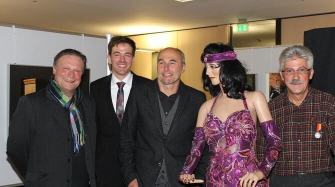 Gruppenbild mit Plastikdame (von links): Helmut Bachschuster, Bernd Schwab (KSK), Siegfried Mayer, Lotar Gutzeit. FOTO: SCHEURER