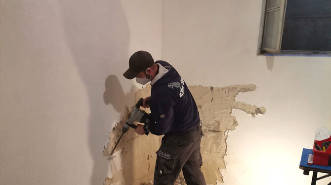 Ehrenamtliche Helfer haben schon viel Eigenleistung investiert, um die Räume, in die künftig der Jugendtreff einziehen soll, zu renovieren. FOTO: TVG