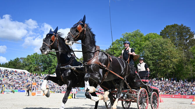 Auch bei den Springpferden gab es herausragende Talente. Allen voran der faszinierend abfußende, drahtige Braune Comme Prevue/Pasco-Sohn Comme Cavelle, der mit dem positiven Körurteil ausgestattet, für 36.500 Euro an einen der derzeit erfolgreichsten deutschen Springställe verkauft wurde. Für ihn ist der Deckeinsatz 2024 im Haupt- und Landgestüt Marbach geplant. Der zweite gekörte Hengst der Sattelkörung, Call me Crack, wurde für 29.000 Euro von einer Besitzergemeinschaft erfolgreicher Springställe erworben. Der nicht gekörte Chacoon Blue/Espri Sohn Chacoopri wurde für 26.000 Euro zugeschlagen.