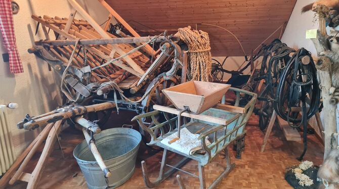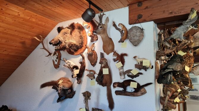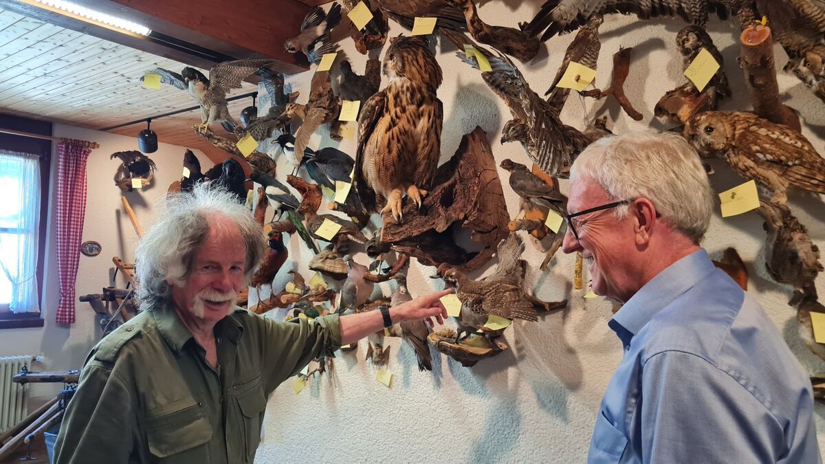 Theo Strasser (links) hat Bürgermeister Klemens Betz geholfen, Ordnung in die Sammlung zu bringen, die rund 100 präparierte Tiere umfasst.