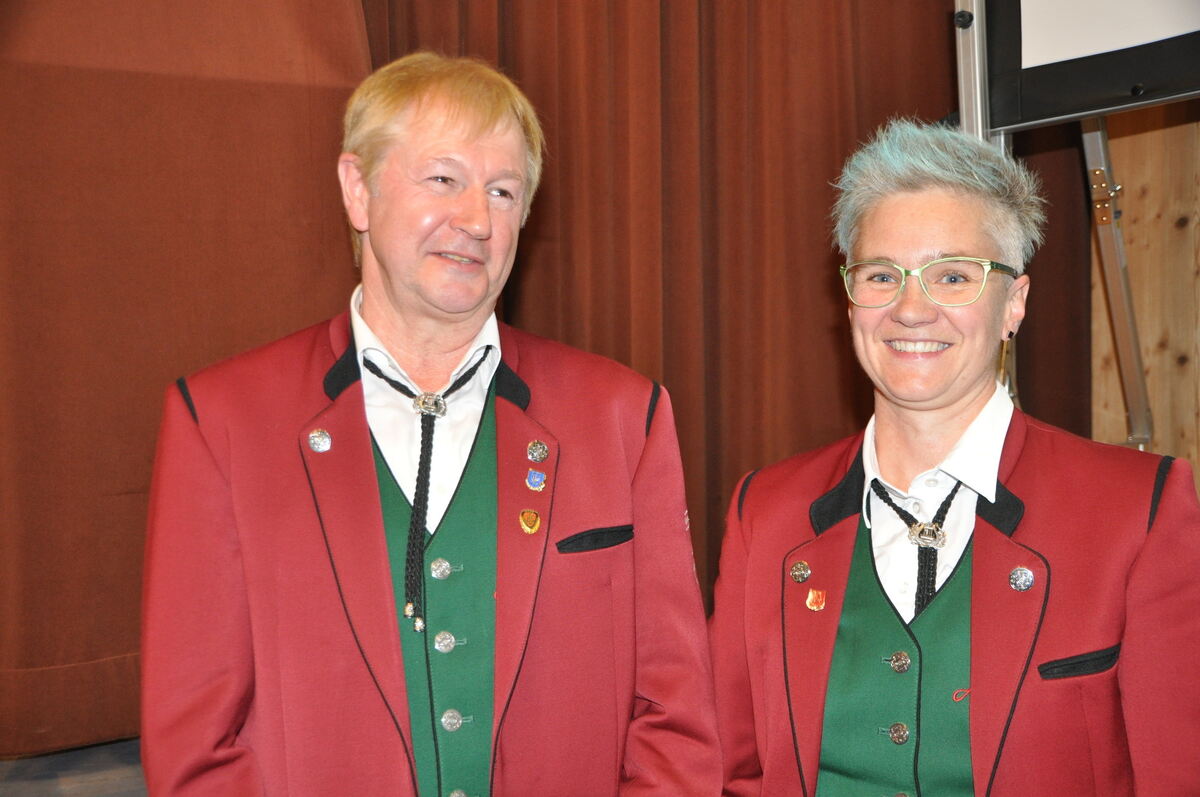 Ehrung bei den Lautertalmusikanten: Gerhard Stoß wird für 50 Jahre Tätigkeit im Verein, Nicole Dorow für 25 Jahre als Jugendleiterin ausgezeichnet. FOTO: BIMEK