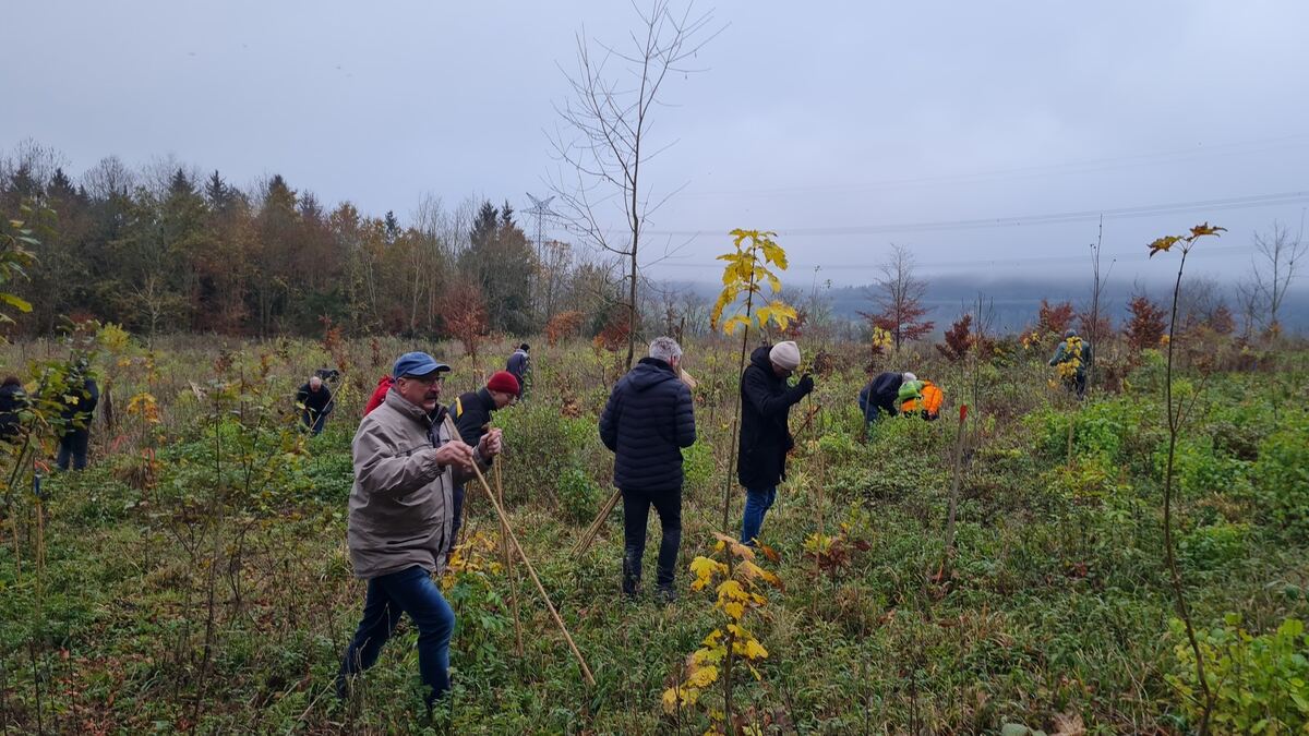 Wo von Natur aus kein wirtschaftlicher Holzvorrat mehr nachwächst, muss der Mensch nachhelfen. Auch dafür hatten die Fachfrauen ein Beispiel. Auf einer eingezäunten, etwa einen Hektar großen Freifläche, die Sturm und Käfer komplett entwaldet hatten, hat Caroline Freitag 1.800 Eichen und jeweils mehrere Hundert Begleitbäume wie Ahorn, Elsbeere und Kirsche pflanzen lassen. Die Erstinvestition samt Zaun bezifferte Freitag auf rund 13.000 Euro. Mit dem Pflanzen ist es aber längst nicht getan: Eine Kultur dieser Art braucht jahrelange, regelmäßige Pflege. Im trockenen Sommer 2022 war Freitag kurz davor, die Feuerwehr zu bitten, die Setzlinge im Rahmen einer Übung zu gießen.