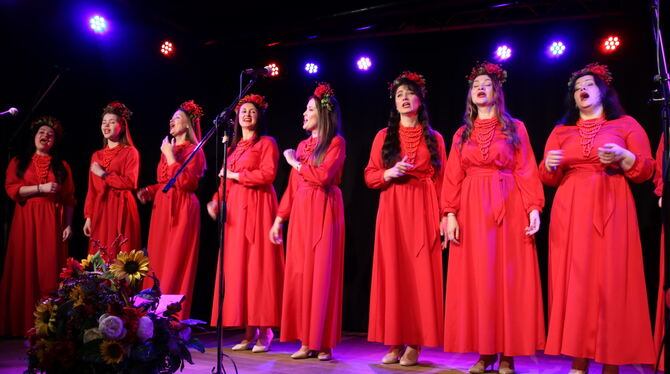 Gestalteten den Benefizabend im Adler in Meidelstetten: Die elf Sängerinnen des Chores Chervona Kalyna.
