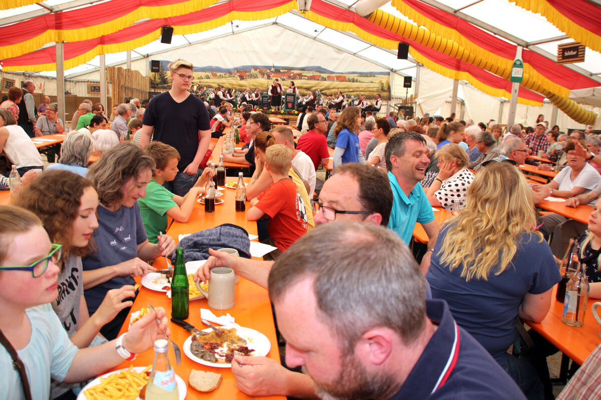 Ein beheiztes Festzelt mit einer vielfältigen Auswahl an kulinarischen Leckerbissen erwartet die Gäste am Sonntag und Montag. Die Sektbar öffnet am Samstag- und Sonntagabend, neu ist die Weintheke, an der Tröpfle der besonderen Art angeboten werden. Bei der kulinarischen Auswahl legt der SSV Bernloch Wert auf qualitativ hochwertige Produkte von Lieferanten aus der Region. Die Salate werden von vielen fleißigen Helfern in Eigenregie hergestellt. Am Maifeiertag gibt es Schlachtplatte mit frischem Bauernbrot aus dem Bernlocher Backhaus.