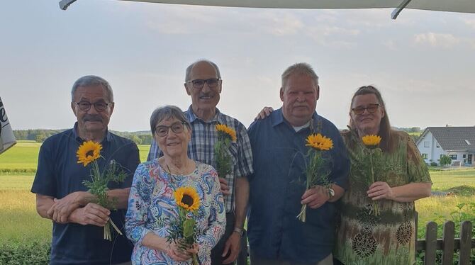 Sie besteht aus massivem Eichenholz und einem Sockel aus Böttinger Marmor: beides Materialien, die für Kraft und Stärke und Beständigkeit stehen, wie sie laut Wenger-Greve auch den Vorsitzenden Ernst Eberhardt auszeichneten. Wobei Eberhardt eben nicht nur seit zehn Jahren die Fäden im Bürgernetz zusammenhält und die vielen Helfer-Einsätze koordiniert, sondern auch selbst zum Kreis der eifrig Helfenden zählt. Für Eberhardts Frau Regina gab es vom Bürgernetz Alb ein Blumengebinde. Und für alle Vorstandsmitglieder noch eine einzelne Sonnenblume für das gemeinsame Erinnerungsfoto. (eb)