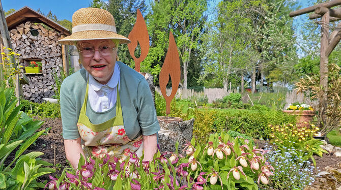 Gerda Wittich erfreut sich an ihren Frauenschuh-Orchideen, die nur 14 Tage lang blühen.
