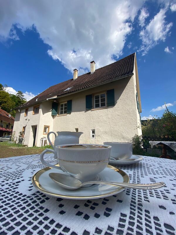 Früher hartes Leben, heute idyllischer Rückzugsort: Kaffee im Garten mit Blick aufs alte Pfarrhaus. FOTOS: BLOCHING