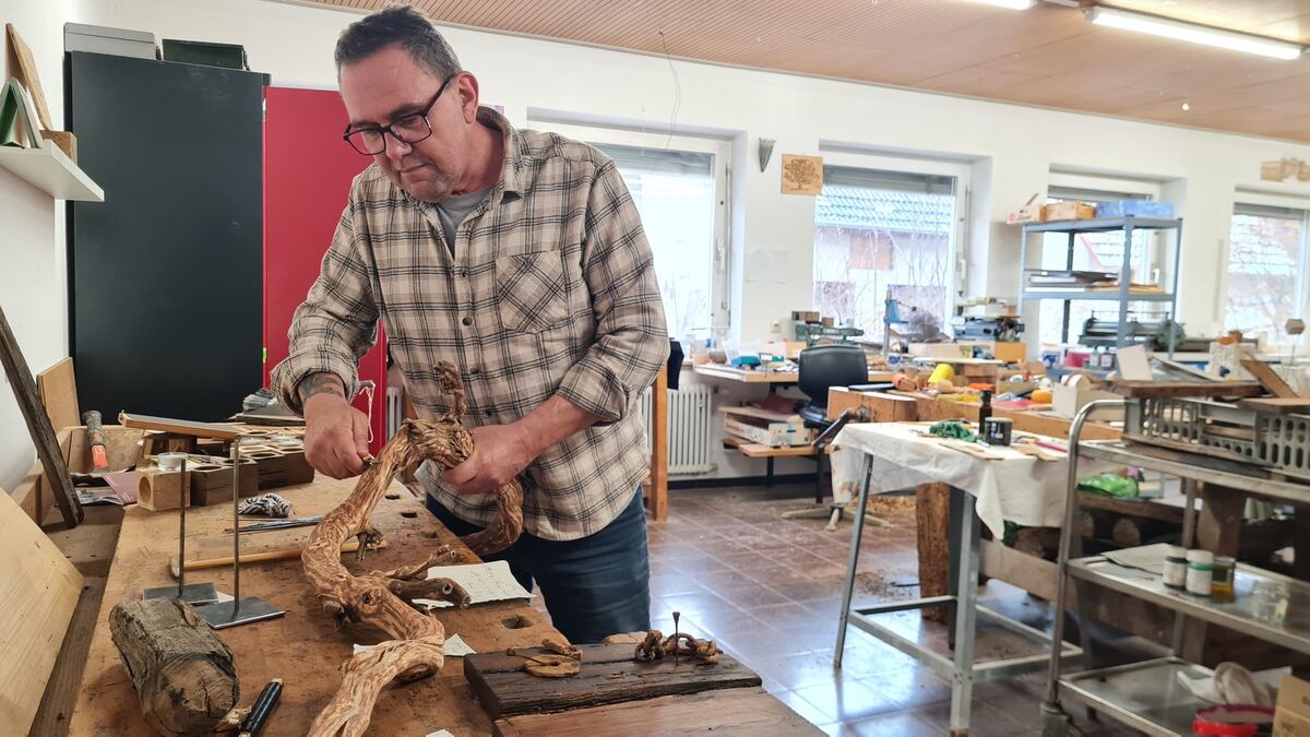 Jochen Hofhansel in seinem Reich: Der Kunsthandwerker arbeitet im Atelier des Living Museums Alb der Bruderhaus-Diakonie in Butt