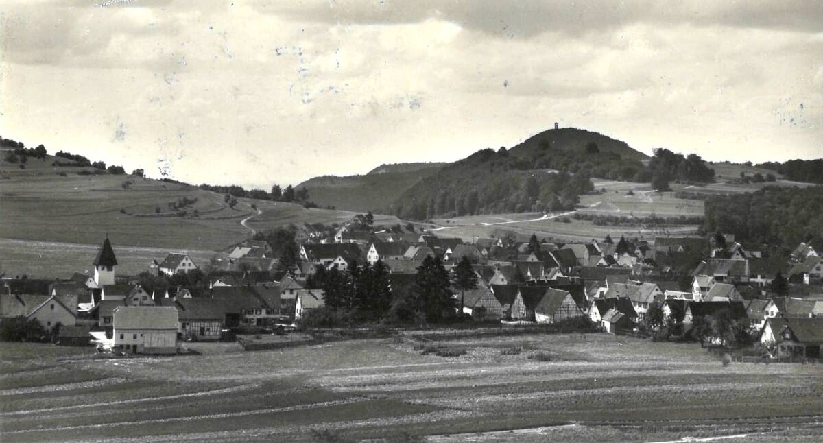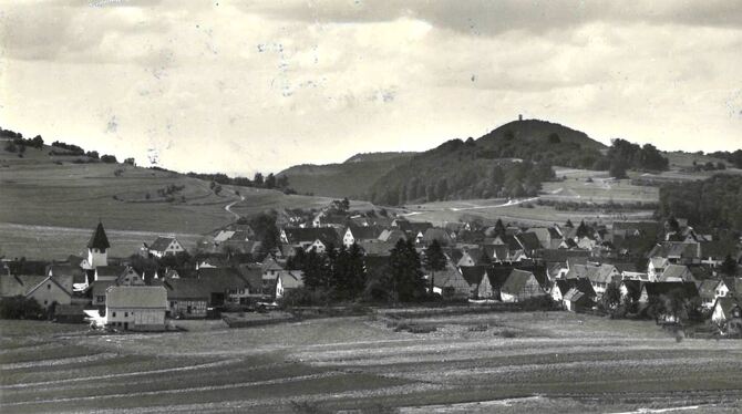 Blick auf das Alb-Dörfchen Genkingen: Die Aufnahme zeigt den Ort im Jahr 1936 mit Blick auf den Roßberg.