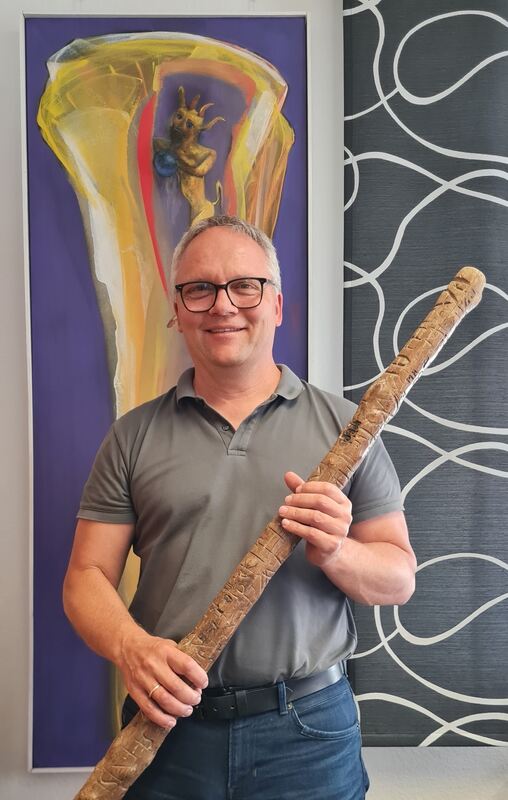 Das Bild vom Teufel nimmt er mit, den »Aichstetter Dorfprügel« übergibt er offiziell an seinen Nachfolger: Reinhold Teufel verabschiedet sich als Bürgermeister von Pfronstetten.