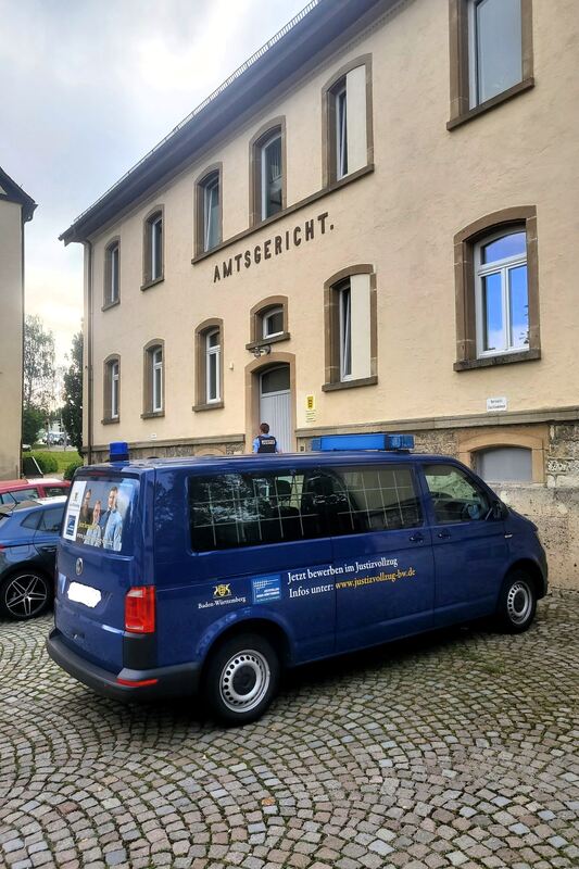 Der Angeklagte wurde im Gefangenentransportwagen, begleitet von zwei Justizbeamten, zur Verhandlung in Münsingen gebracht. FOTO: LENK
