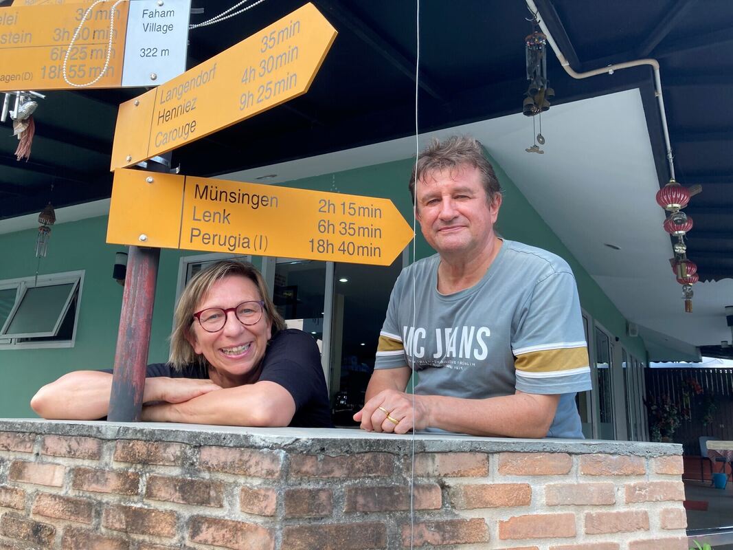 Wer hätte geglaubt, dass diese Schilder nicht in den Schweizer Bergen sondern in Thailand zu finden sind? Die Münsingerin Petra Neth ist der Spur des Wegweisers gefolgt und hat dabei Martin Woodtli aus Münsingen in der Schweiz kennengelernt, der nahe der Großstadt Chiang Mai ein Dorf für Demenzpatienten aus Europa aufgebaut hat. FOTO: PRIVAT