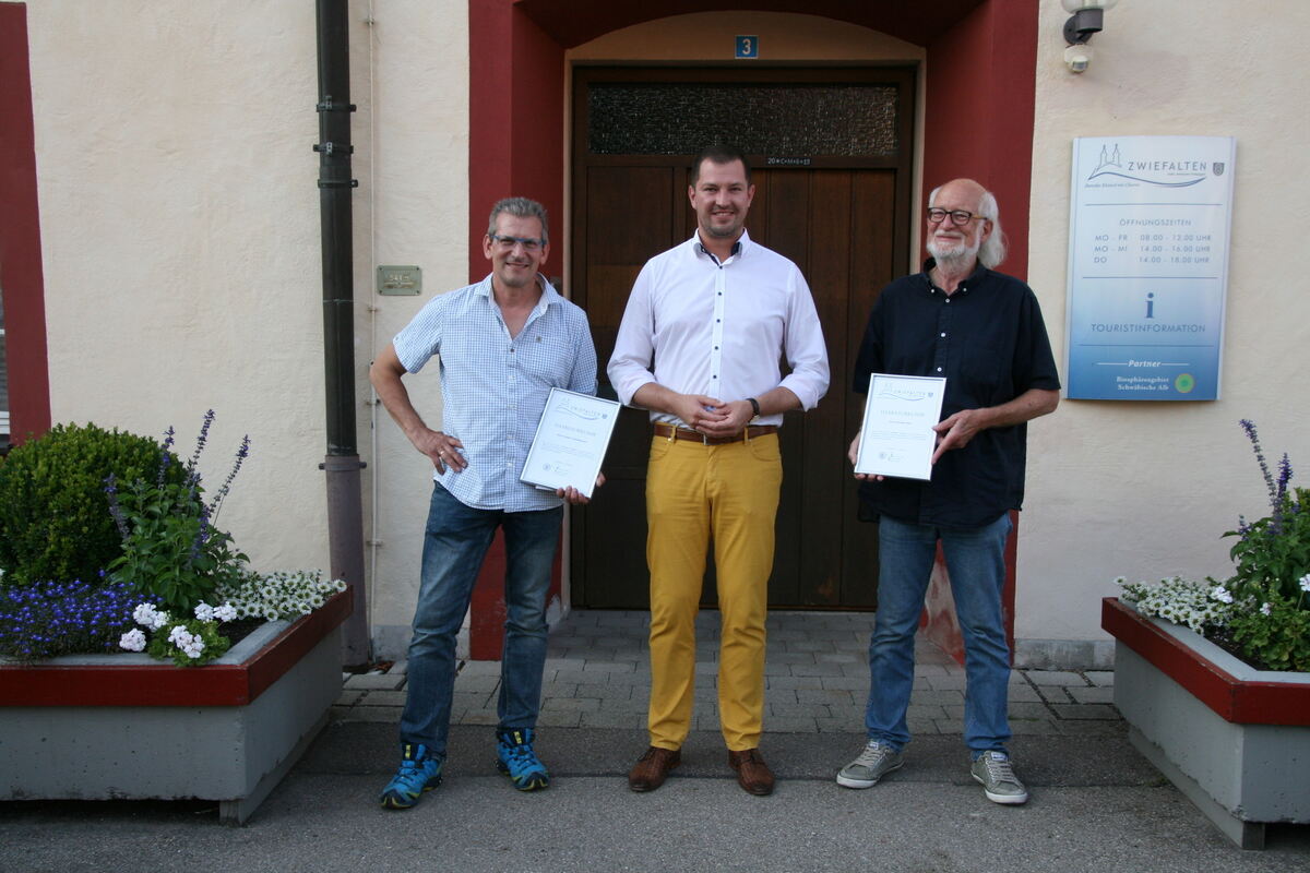 Stefan Aschenbrenner (links) und Gerhard Wax (rechts) wurden von Bürgermeister Matthias Henne aus dem Gemeinderat Zwiefalten verabschiedet.