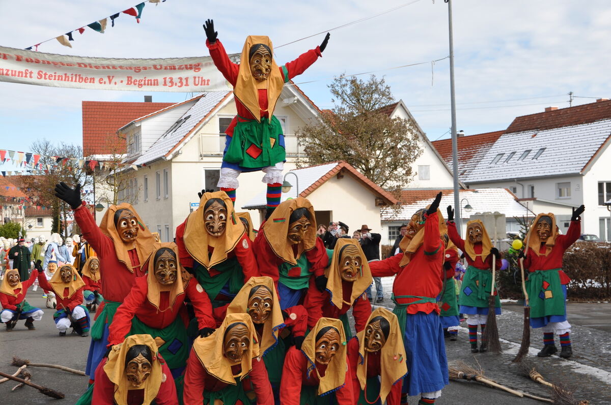 Kein Problem für die Zuschauer, waren doch alle in Fasnetslaune und mit den Hülaschlappr und Bauze, Bauze scheinbar schon vertraut. »Wir haben einiges zu feiern, von 120 Jahre Steinhilber Fasnet über 40+2 Jahre Zunftrat und 40 Jahre Küchlesnarr«, fasst Marc Hazotte zusammen, Zunftmeister der sieben Narrengruppen mit mehr als 530 Mitgliedern. (GEA)