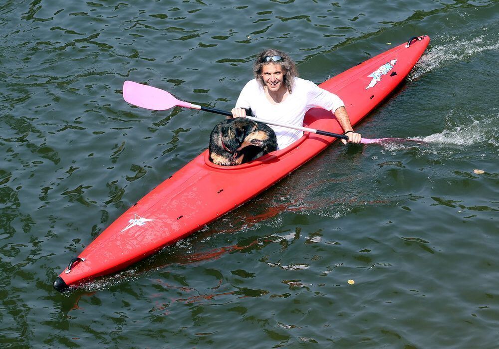 Zwei in einem Boot: Lutz und Hans-Werner aus Meidelstetten paddeln bei Zwiefaltendorf, wo die Donau noch genügend Wasser aufweist.