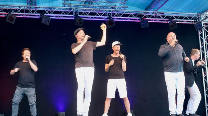 TROCHTELFINGEN. Die Stuttgarter A-cappella-Formation die Füenf hat nach fast 28 erfolgreichen Jahren beschlossen, sich als Gruppe aufzulösen. Zuvor geht es aber noch auf eine mehr als zweijährige Abschiedstournee, die die fünf Goldkehlchen am Samstag auf Einladung des Vereins für kulturelle Arbeit auch in den mit gut 450 Zuschauern annähernd ausverkauften Schlossgarten in Trochtelfingen führte.