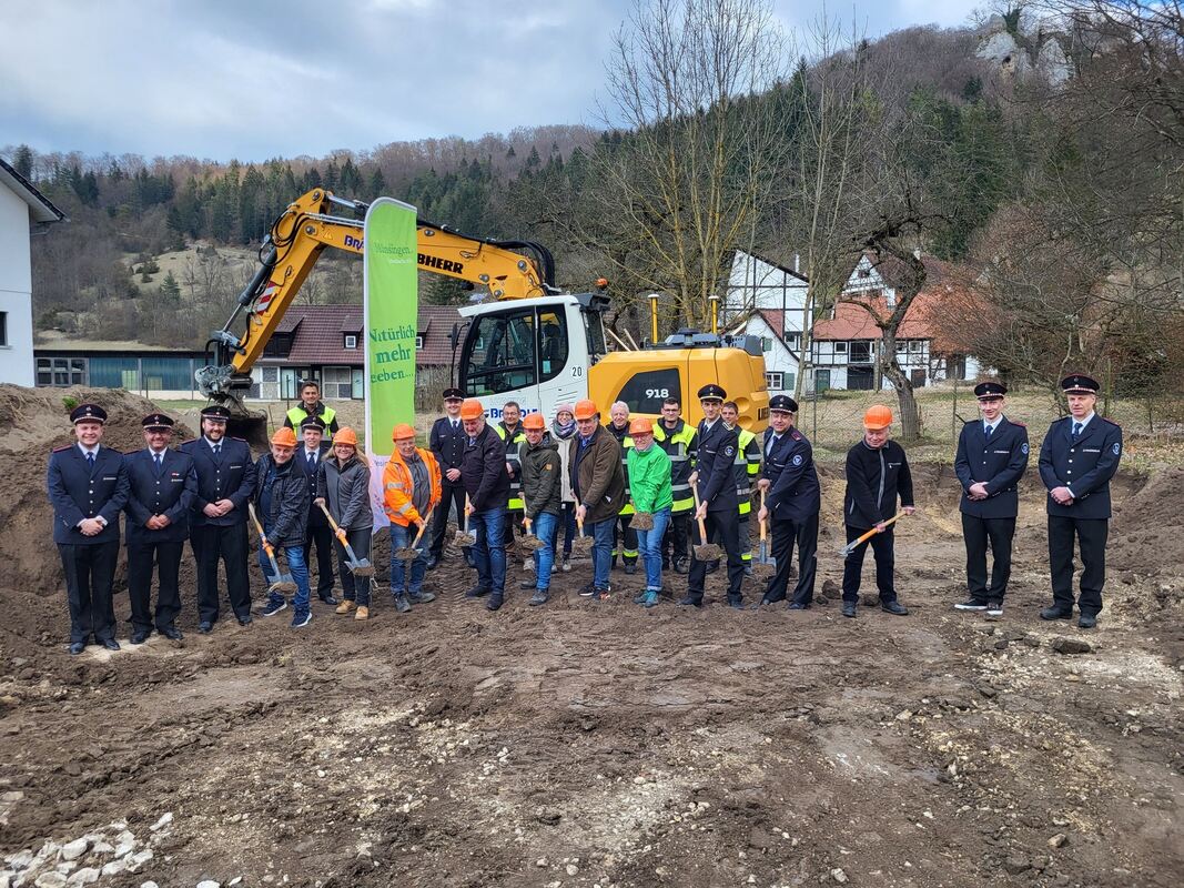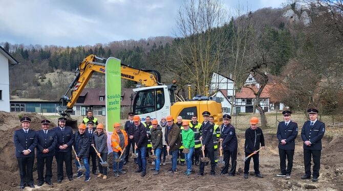 MÜNSINGEN-GUNDELFINGEN. Der Bagger ist bereits am Dienstagvormittag angerückt, am Abend erfolgte der obligatorische Spatenstich für den Neubau des Feuerwehrgerätehauses in Gundelfingen. Ein symbolischer Akt, der die Freude der 21 Mann starken Freiwilligen Feuerwehr und der rund 110 Einwohner ausdrückte, immerhin mussten sie lange auf ein zeitgemäßes und leistungsfähiges Feuerwehrgebäude warten. Es ersetzt den bisherigen kleinen und unbeheizbaren Schuppen, der lediglich die Unterbringung einer Handspritze ermöglichte.