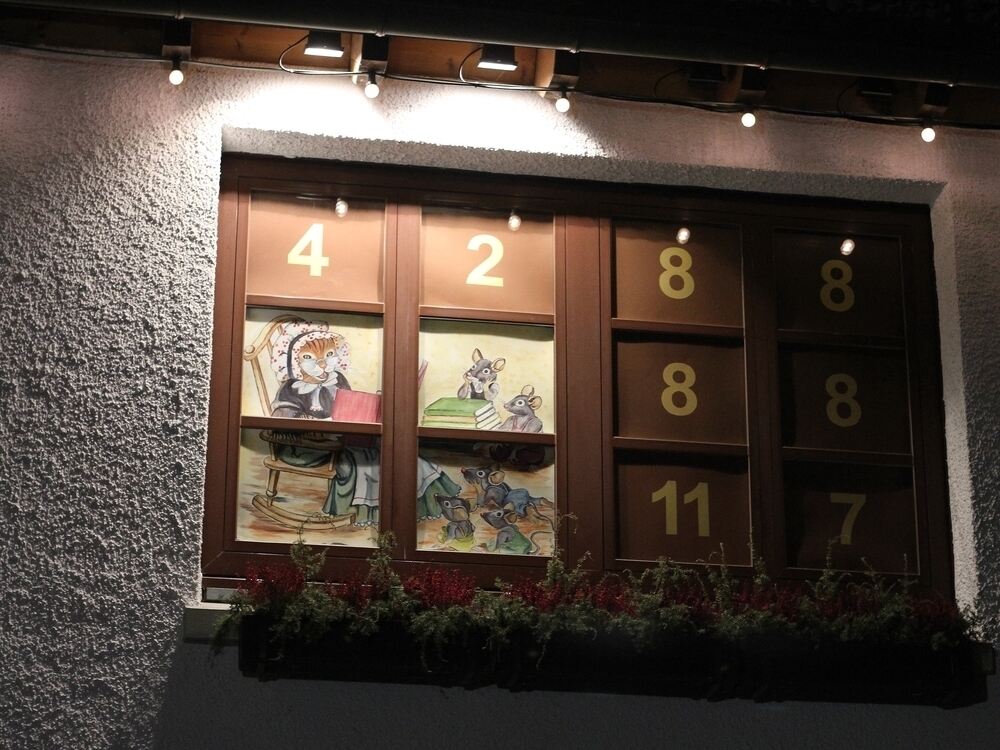 Gomadingens Rathaus ist wieder ein großer Adventskalender. Hinter den Türchen stecken Märchenmotive.