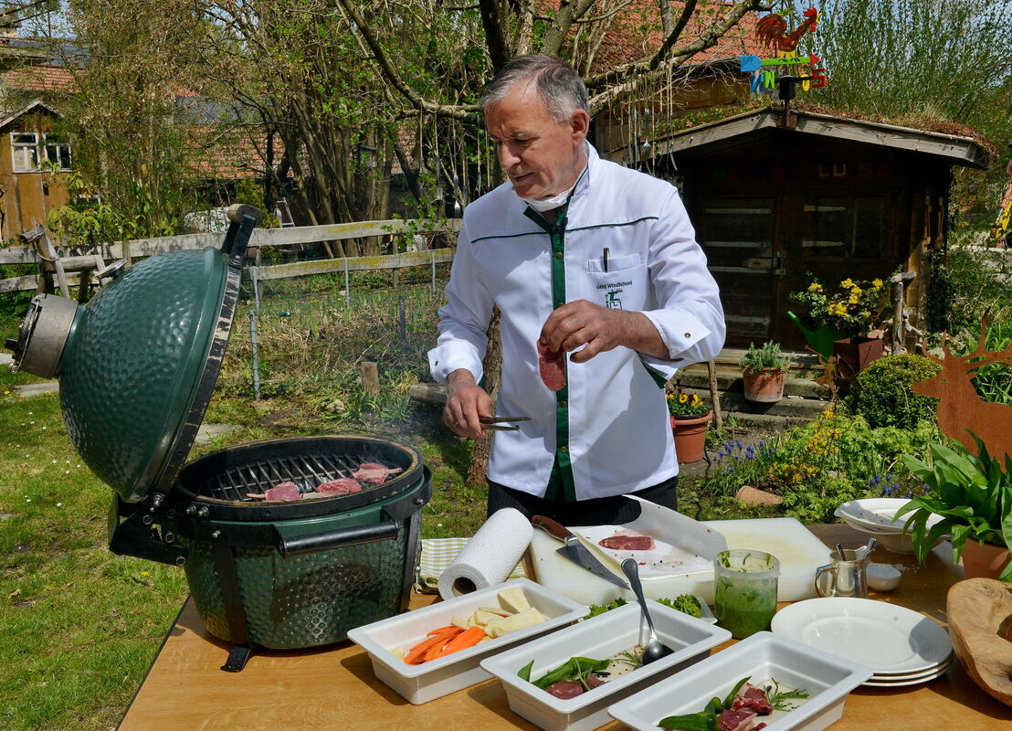 Gerd Windhösel legt das Lamm auf sein Big Green Egg. Das Ergebnis war köstlich.