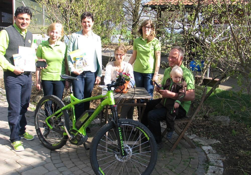 Eine Albhof-Tour ist künftig auch mit dem E-Bike möglich. Tourist-Chef Hans-Peter Engelhart, links, und Landfrauen-Vorsitzende Pia Münch, Dritte von links, freuen sich mit allen an diesem neuen Angebot Beteiligten.
