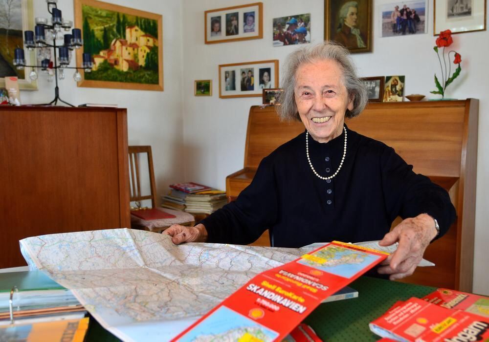 Irmgard Heideker könnte das Reisen an sich erfunden haben: Sie war mehr als ihr halbes Leben lang kreuz und quer am liebsten an Bord ihrer großen Reisebusse durch halb Europa unterwegs. FOTO: NIETHAMMER