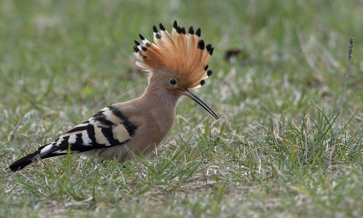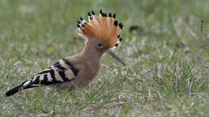 Bei Aufregung und beim Verzehr seiner Beute sträubte der amselgroße Vogel seine Federhaube, was ihm eine beeindruckende optische Größe und Ausstrahlung verlieh. Mit rund 30 Zentimetern Körperlänge und einem Gewicht von nicht einmal 90 Gramm ist ein Wiedehopf, der artenmäßig zur Gruppe der Hornvögel und Hopfe (Bucerotiformes) gehört, ja eher ein gefiedertes Leichtgewicht.