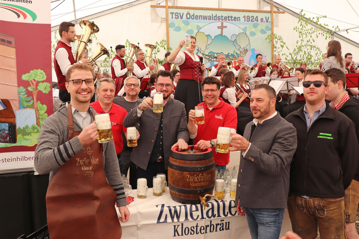 Fassanstich mit Hohensteins neuem Bürgermeister Simon Baier (links) beim Ödenwaldstetter Bockbierfest. FOTO: BLOCHING