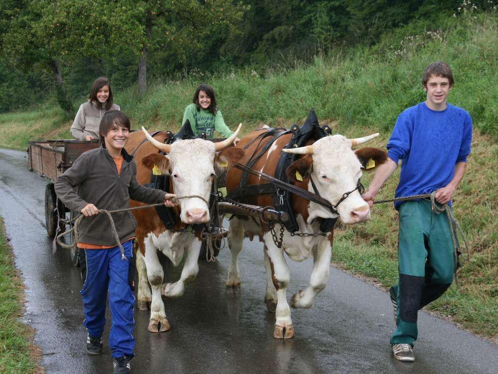 Jugendliche aus Hochberg werden mit einem Kuhgespann zum Festzug kommen. FOTO: HT