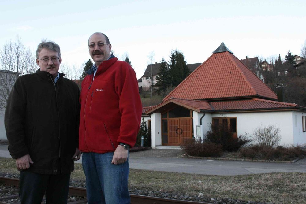 Bürgermeister Klemens Betz und der Albvereins-Vorsitzende Siegfried Leuze haben beim Ankauf der ehemaligen neuapostolischen Kirc
