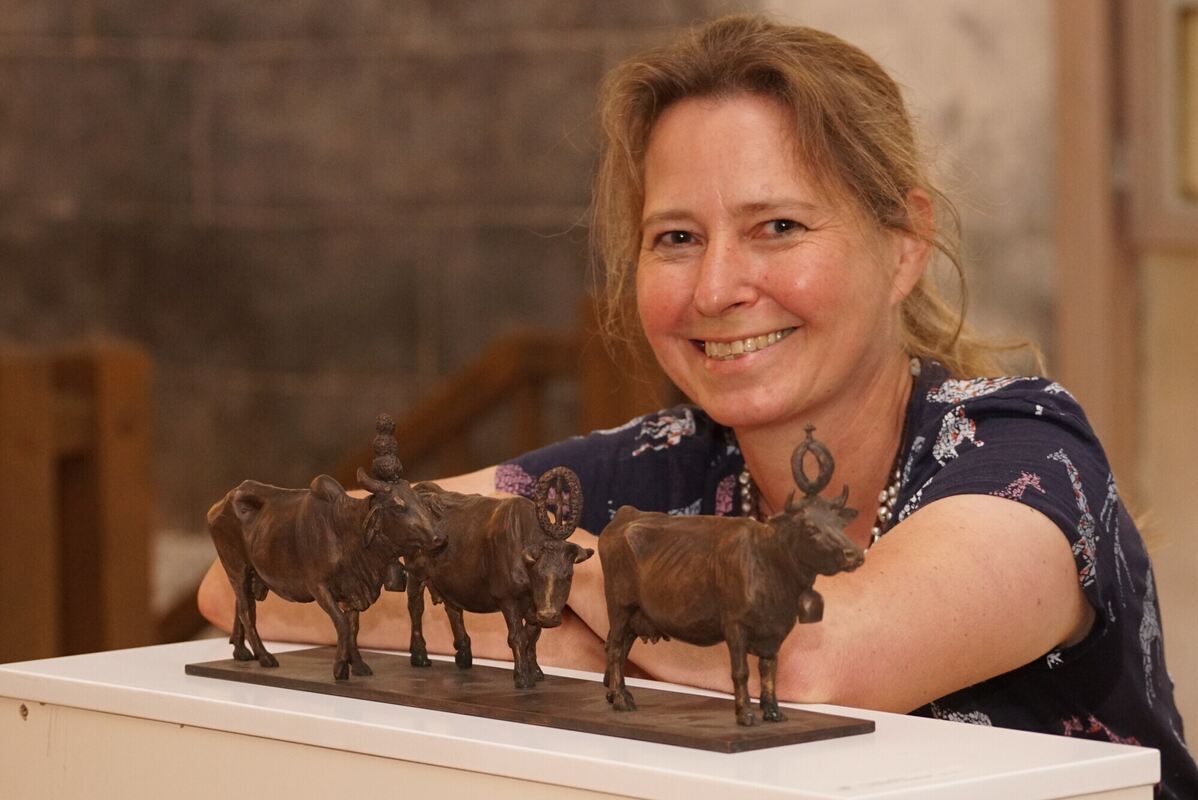 Eberl fertigt in ihrem Atelier in München nicht nur Pferde, sondern auch Rindviecher, Hunde, Elefanten, Nashörner, Ziegen und Fabelwesen. Bei ihren Arbeiten geht es ihr »um eine naturgetreue Wiedergabe von Anatomie und Wesen der Tiere«. Das stimmt. Beim Betrachten fällt einem sofort die sehr feine und detaillierte Arbeitsweise auf. Jedes ihrer Werke drückt Emotionen aus. Ein Hingucker ist ihr »Integrativer Almabtrieb« mit zwei deutschen Graukühen und einer indischen Zebukuh. Nicht weit davon entfernt stehen vier spanische Stuten nebeneinander, ein paar Schritte weiter eine Ziege.