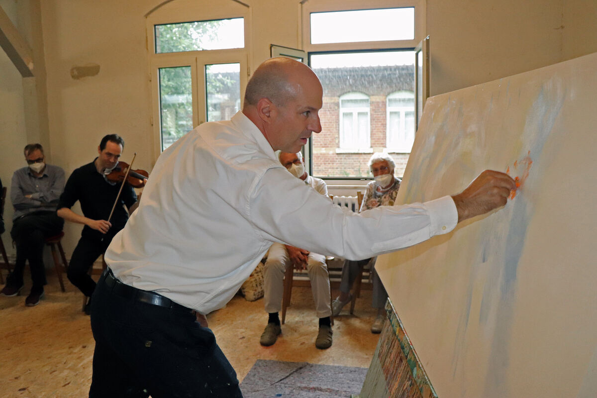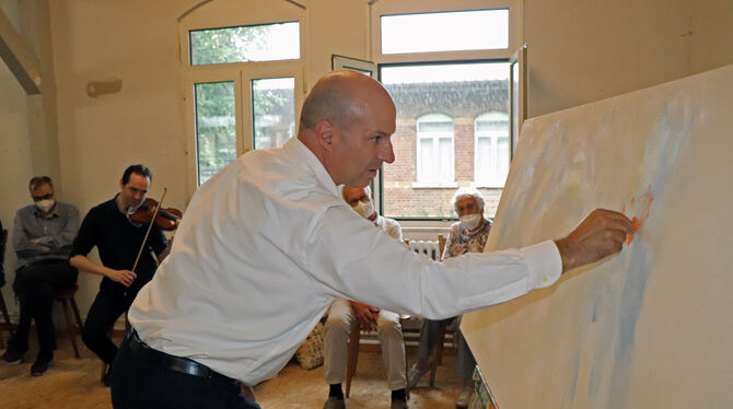 Mit Livemalerei hat Mark Krause seine Ausstellung »Lichtgetragen« im BT24 im Albgut Münsingen eröffnet.