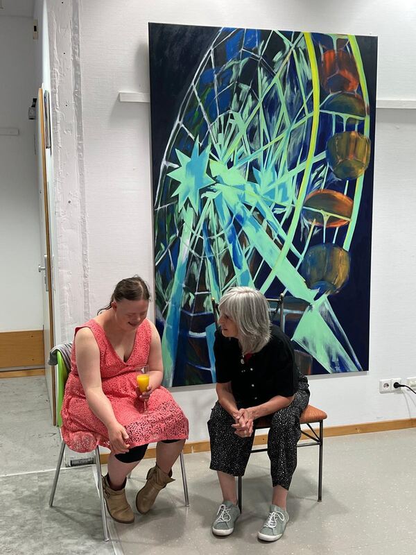 Die in St. Johann aufgewachsene und heute an der Staatlichen Akademie der Bildenden Künste Karlsruhe studierende Künstlerin zeigt im Kultspace ihre erste Einzelausstellung, heißt es in einer Mitteilung. Unter dem Leitmotiv des Jahrmarkts entfaltet sie ein breites Spektrum an Malereien, von kleinformatigen Arbeiten bis hin zu monumentalen Leinwänden. Mit den Klängen von Cello und Klavier begann die Vernissage und der Raum füllte sich unmittelbar mit einer leichten, heiteren Atmosphäre.