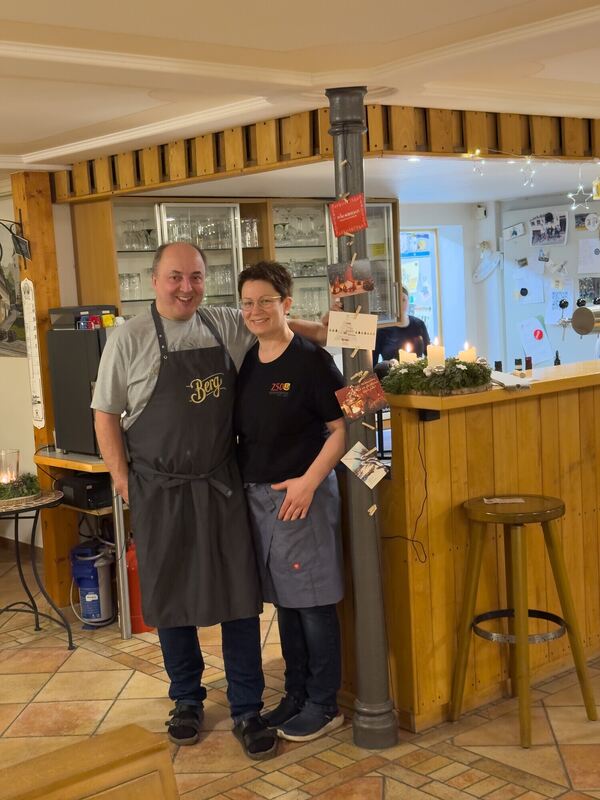 Reinhard Mayer und seine Frau Daniela führen das Gasthaus Adler in Buttenhausen weiter. Für sie ist es eine Herzensangelegenheit, die Tradition weiterzuführen. Donnerstags, freitags und sonntags – auf Bestellung auch samstags – sind sie die Wirte im Gastraum. FOTO: DEWALD
