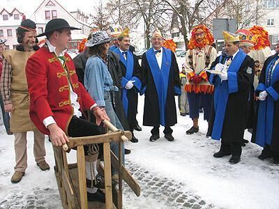 Sie trugen ihn nur wenige Meter: Bürgermeister Gerrit Elser wurde vom Elferrat der Sonnenbühler Karnevalsgesellschaft im Saugatter abtransportiert.
