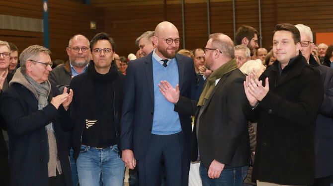 Florian Bauer (Mitte) durfte sich über die Glückwünsche zahlreicher Abgeordneter und Bürgermeister-Kollegen freuen.
