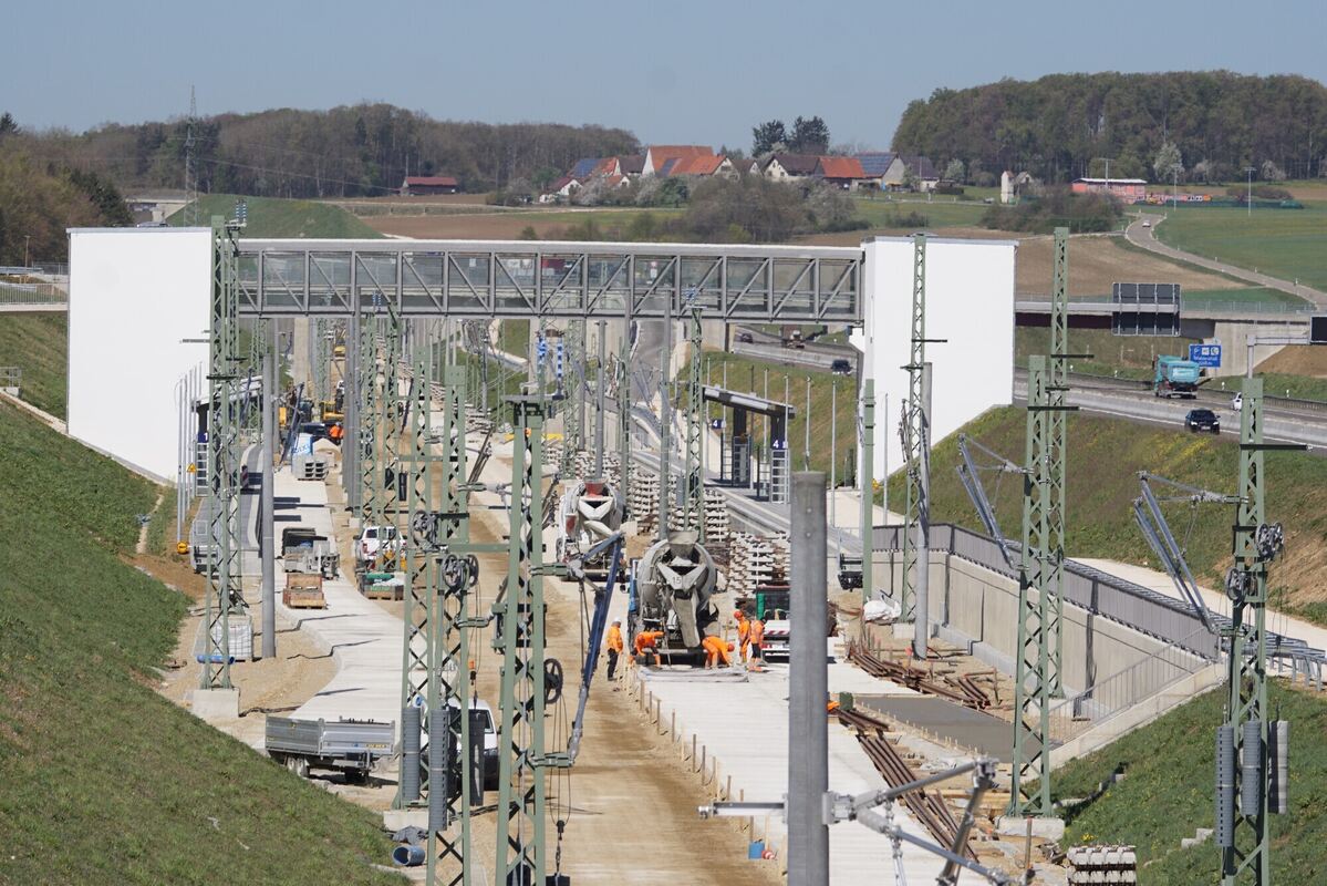 Bahnhalt Merklingen: Die Fußgängerbrücke zwischen Park-and-Ride-Anlage und Bahnsteig steht bereits. FOTOS: LENK