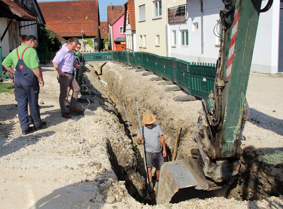 Bürgermeister Mario Storz (2. von links) und der technische Ausschuss des Gemeinderats informieren sich über den Baufortschritt in der Sternbergstraße. FOTOS: LEIPPERT