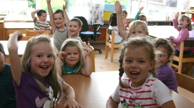 Sichtlich Spaß haben diese Buben und Mädchen im evangelischen Kindergarten Berg in Großengstingen.